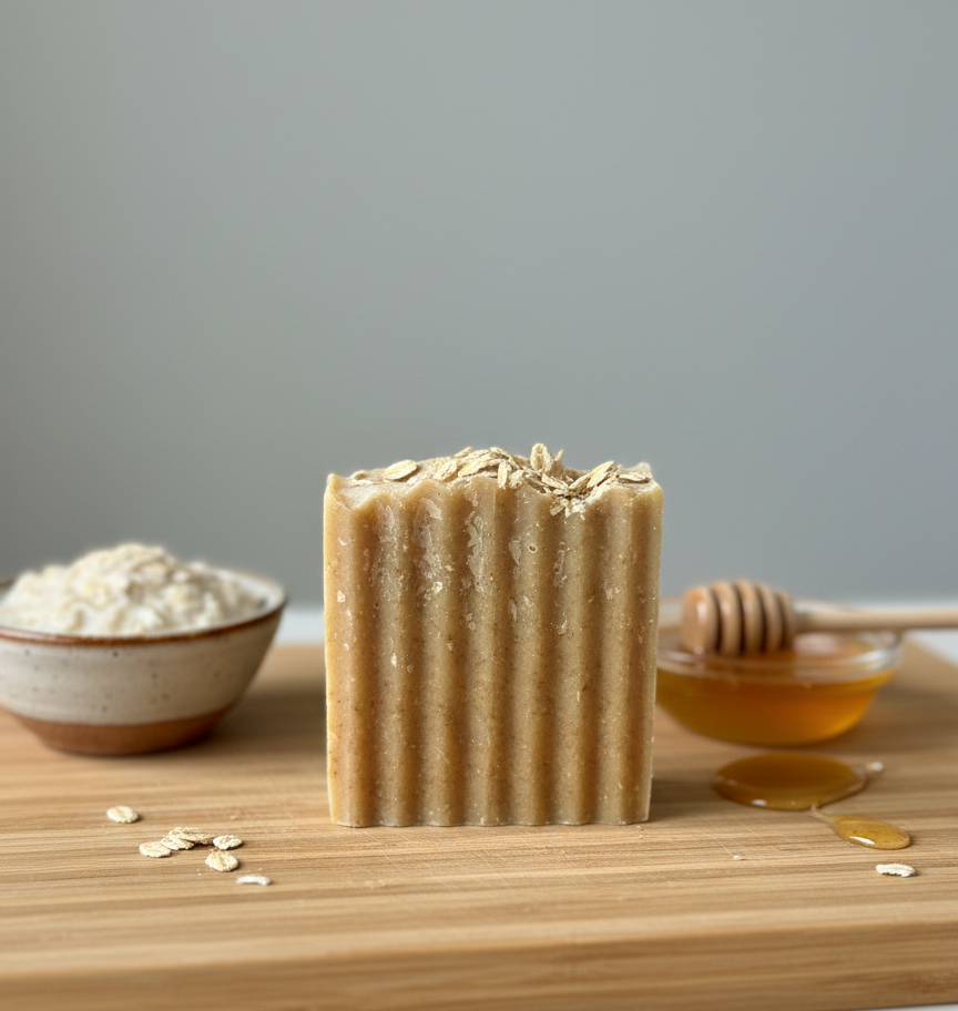 The Bare Bar offers the ultimate gentle cleanse, thoughtfully crafted without any added fragrances for those with sensitive skin or a preference for purity. This unscented bar combines the calming, anti-inflammatory properties of colloidal oats with the deep, natural hydration of raw honey to soothe irritation and lock in moisture. As you wash, the finely ground oats provide a light, creamy exfoliation that leaves your skin feeling incredibly soft, supple, and refreshed without the worry of synthetic scents or harsh additives.